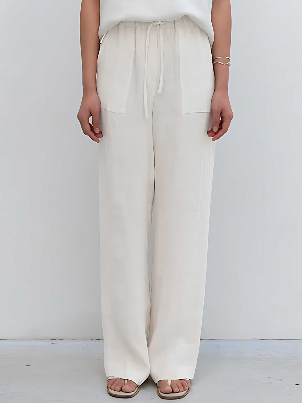 Design: Pantaloni eleganți cu talie înaltă, cu o croială dreaptă, realizați dintr-un amestec de in respirabil și având un design minimalist. Silueta relaxată, dar bine structurată, oferă o sofisticare fără efort.